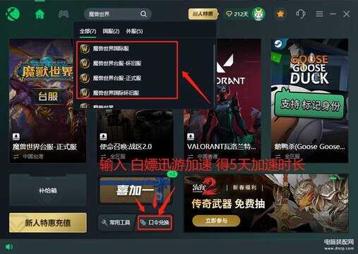 一.相比低延迟的国服,魔兽世界亚服对于国内玩家来说有着很高的网络延迟,所以我们先开启迅游加速器加速魔兽世界亚服。没有迅游加速时长的玩家在迅游加速器口令兑换入口进去输入【白嫖迅游加速】就有5天的加速时长;