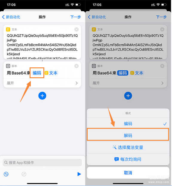 点击「编码」,并在弹出的菜单中选择「解码」选项。