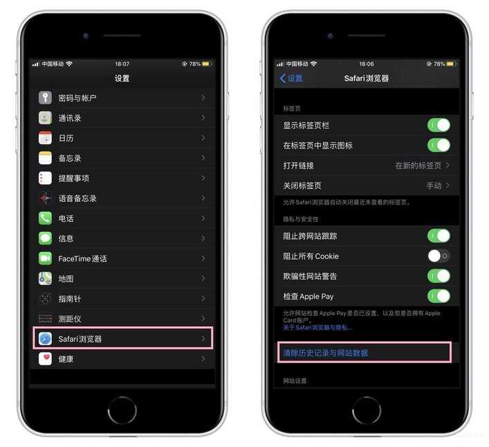 苹果手机自带的浏览器,会产生大量缓存,在设置中找到【Safari浏览器】,然后点击【清除历史记录与网站数据】,这样就能清理缓存数据。
