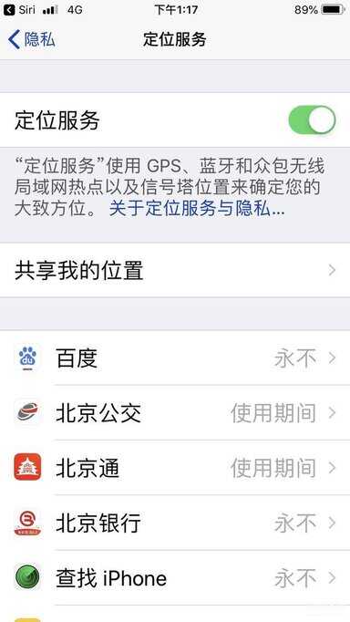 2、点击定位服务设置,打开定位服务,如下图所示: