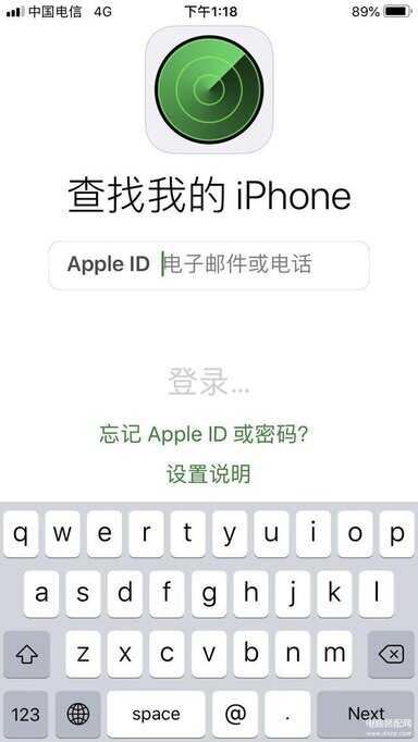 2、点击“查找 iPhone”登录,会让你填写你的Appile ID的账号和密码,如下图所示: