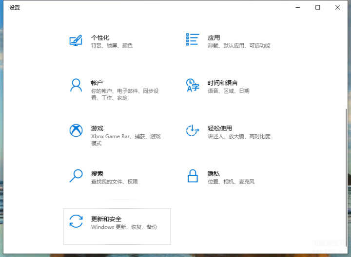 1、首先准备一个空的u盘(至少8g)插到电脑上,然后打开电脑设置,选择更新和安全。