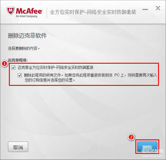 3、在弹出的卸载窗口中,根据您的实际需求,勾选相应选项,并点击“删除”按钮,如图: