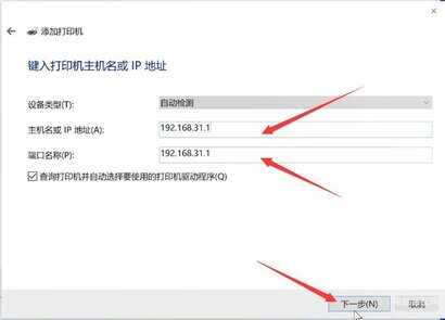 4第四步TCP / IP端口检测完成后,下一步是完成驱动程序型号的检测,选择打印机制造商和打印机型号,下一步,默认设置,下一步