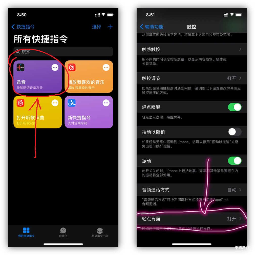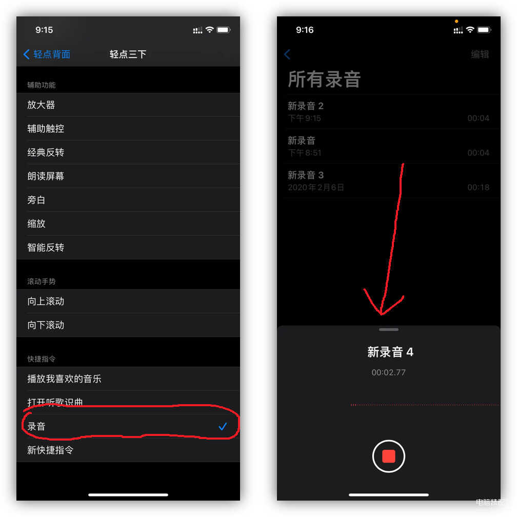那么今天我再给大家分享一个,苹果手机轻敲背面3次,能自动录音的方法。