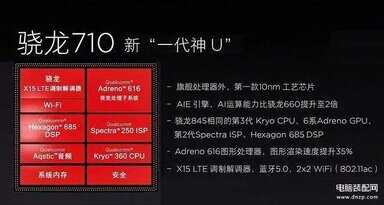 骁龙712搭载了Hexagon 685版本DSP,与高通骁龙845版本相同,相比骁龙710的Hexagon 680版本要更高一些,体验上更有优势一些。