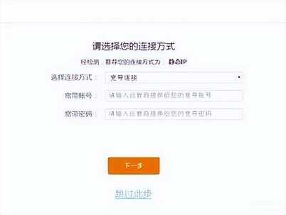 家庭宽带一般选择宽带拨号上网,然后输入您的宽带账号和密码。