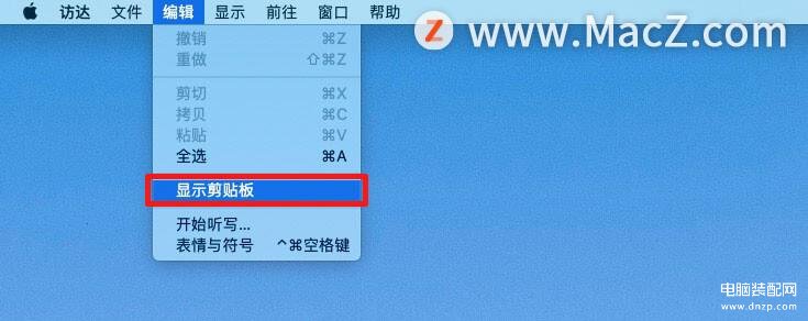 在 Finder 中,“编辑”菜单还包括一个“显示剪贴板”选项,您可以使用该选项查看当前复制的选择。