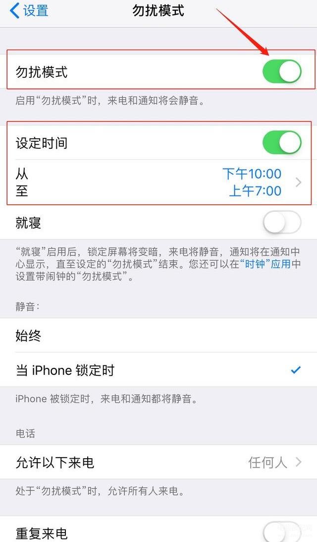 打开“勿扰模式”,同时设定拦截时间,比如上午7:00到下午10:00。这样在这个时间段的骚扰拦截是打开的,会屏蔽所有电话。