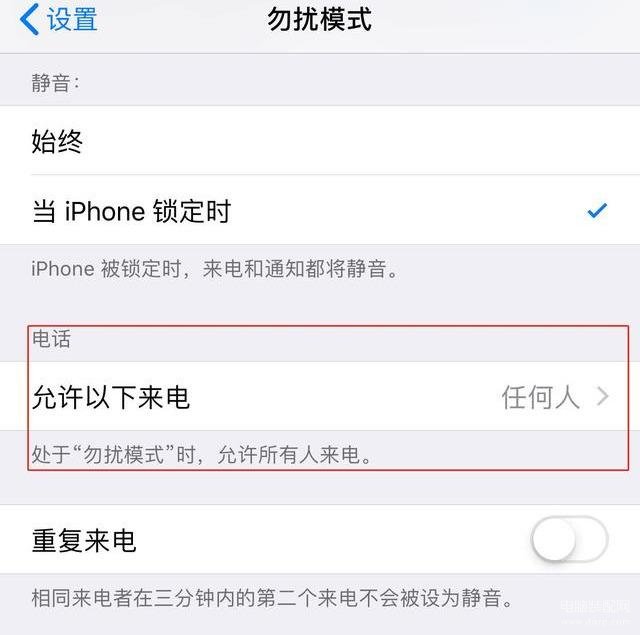 然后返回上一个页面,点击“重复来电”,他的作用是相同来电者在三分钟内的第二个来电不会被设置成静音,这样快递和外卖小哥给你打电话也不会错过啦!