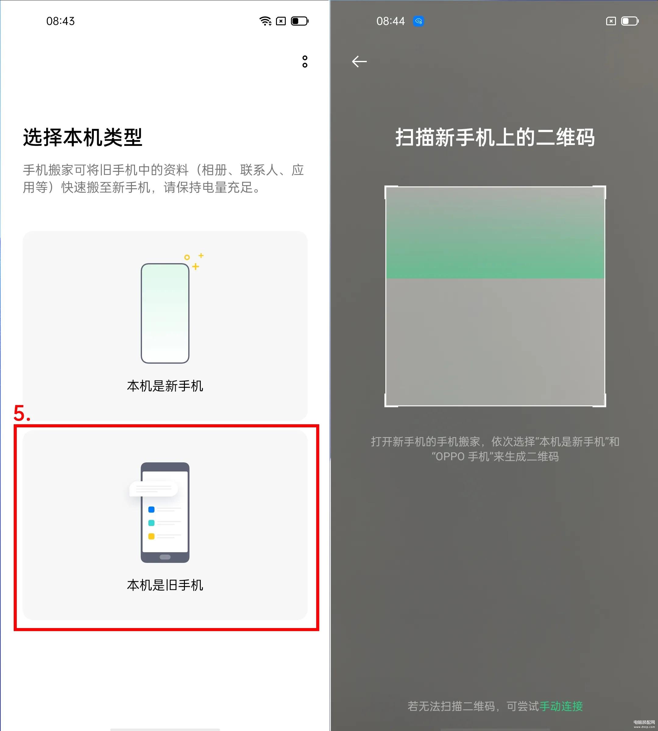 5、然后在旧手机上点击“本机是旧手机”,就会出现扫码界面