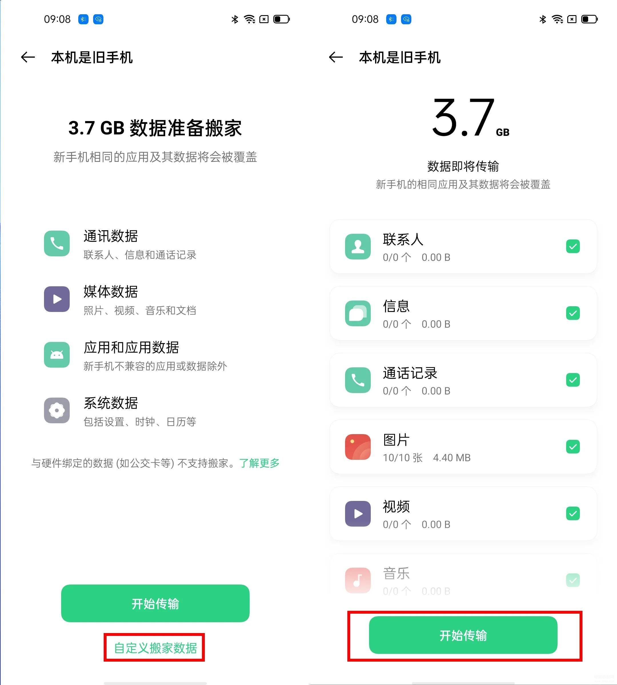 8、选好之后点击“开始传输”,输入隐私密码(一般为锁屏数字密码),一段时间后就搬家成功啦~