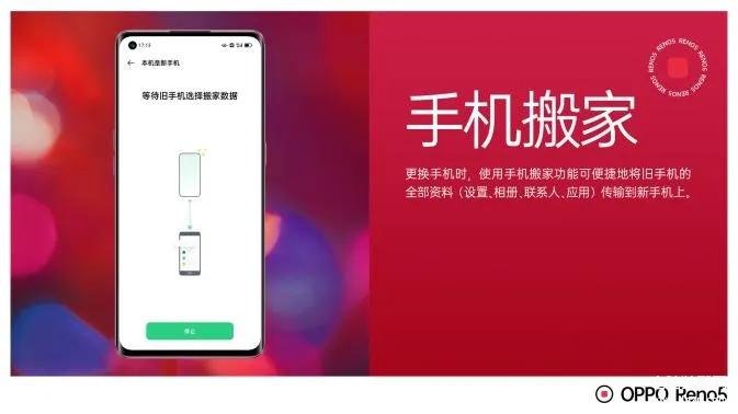 想必大家拿到新手机时的心情都是十分激动和兴奋的,在正式使用新手机前,大家肯定都希望把旧手机的数据尽可能完整地转移到新手机上,动辄几十个G的数据,传输起来真不容易,以往都需要通过下载“换机助手”、“手机精灵”等第三方软件完成。但其实OPPO手机自带的“手机搬家”功能完全可以满足我们的需要,今天我们就以OPPO Reno5系列(Reno5/Reno5 Pro)为例,来一起看看如何将旧手机的数据传输到新手机上吧~