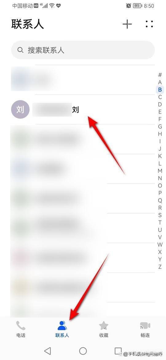 打开手机联系人列表,点击需要拉黑的手机联系人。