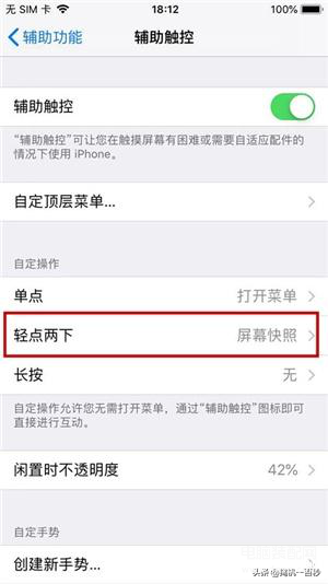 这里同样要用到【辅助触控】的功能,在【辅助触控】功能界面中,在【自定操作】-【轻点两下】-选择【屏幕快照】,这样无需点开小白点,只要双击小白点就可以轻松截屏了。