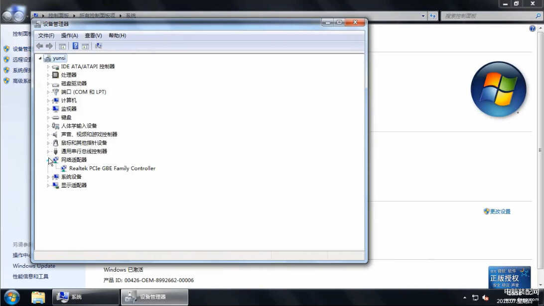 3、点击展开【网络适配器】选项,在这里可以看到电脑的网卡,如果有黄色感叹号的话说明网卡驱动没有安装好。