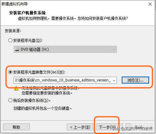 第三步:通过浏览按钮,找到window10的安装文件,点击下一步