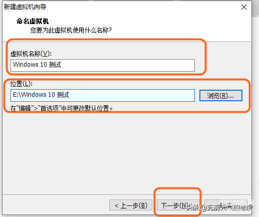 第五步:设置虚拟机名称及安装位置(名称自拟、安装位置选择磁盘空间大于60GB的)