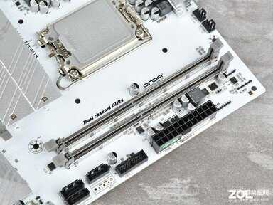 昂达Z790PLUS-W主板的CPU供电接口为单8pin设计,最大能承载380W功耗,建议搭配13代酷睿i7及一下级别的处理器使用。这个接口的朝向规避了装机时顶部风扇卡手的问题。