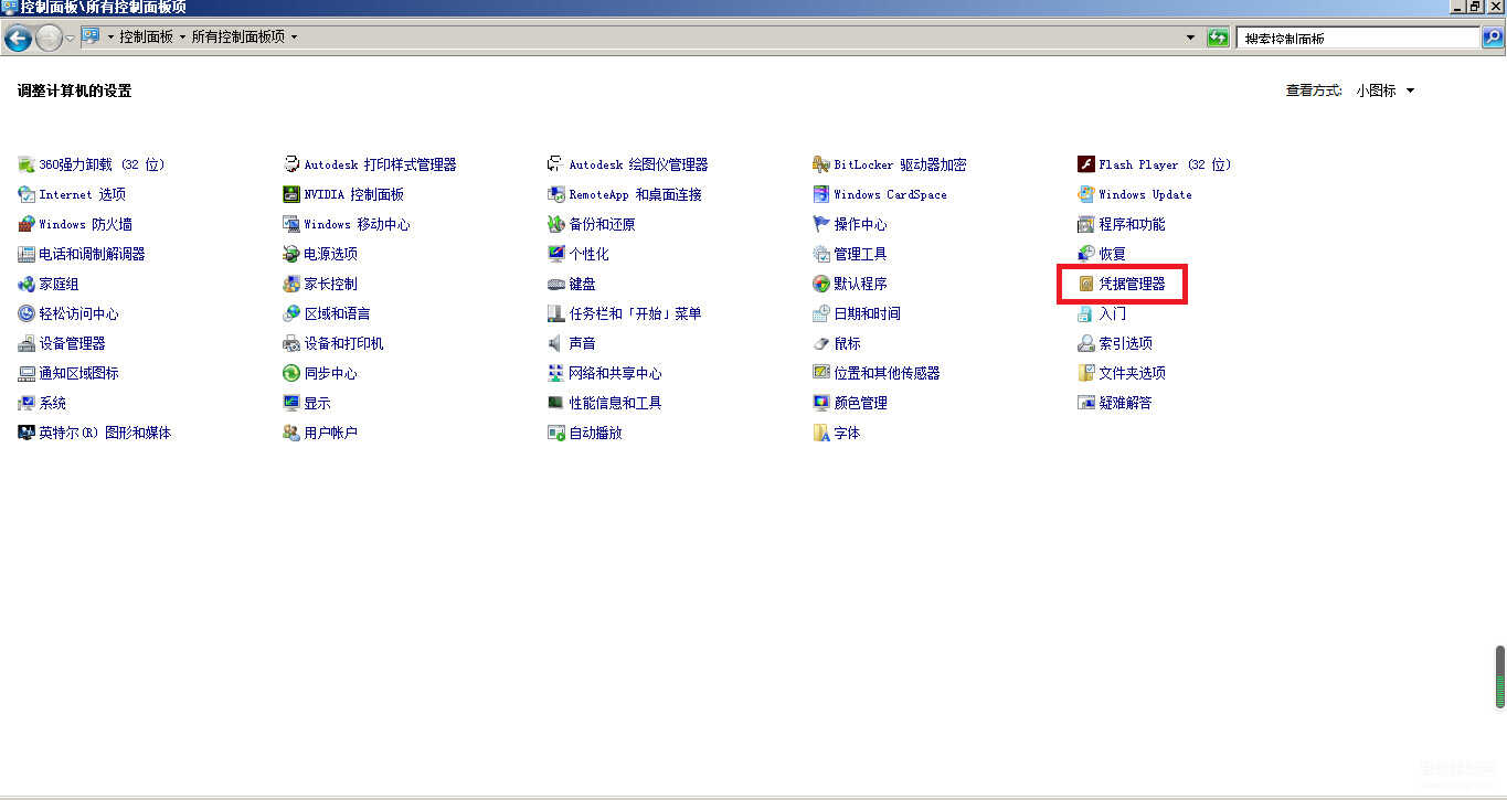 2、以小图标的方式查看之后,点击“凭据管理器”。