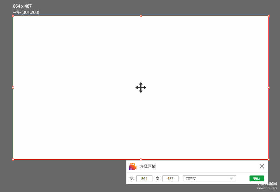 2、以自定义区域录制为例,我们需要先选定录屏的尺寸大小,然后点击“确定”即可;