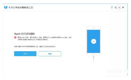3、如果关闭了“查找我的iPhone”,则在检测到设备后立即解锁,随后开始移除,直到出现移除成功界面。