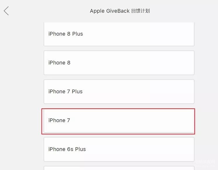 2、接下来是预估您的旧机型能抵扣多少钱,小编以手中的iPhone 7为例,看看到底换新iPhone能够抵扣多少。首先选择,Apple 品牌,