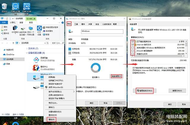 双击打开【我的电脑】,选中电脑C盘,鼠标右键选择【属性】,在第一个小窗口中选择【常规】-【磁盘清理】,在第二个小窗口中,勾选要删除的文件,最后【清理系统文件】-【确定】。