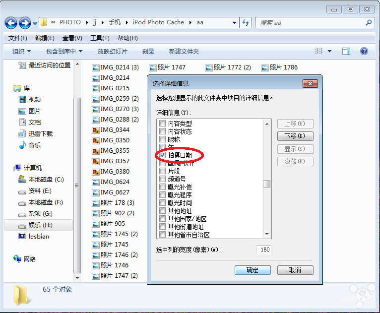 在文件夹空白处,右键--排序方式-更多中间,不拍摄时间选出来。