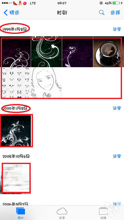 这一些就是导入照片后,iphone无法判定其时间而放到“今天”的照片。