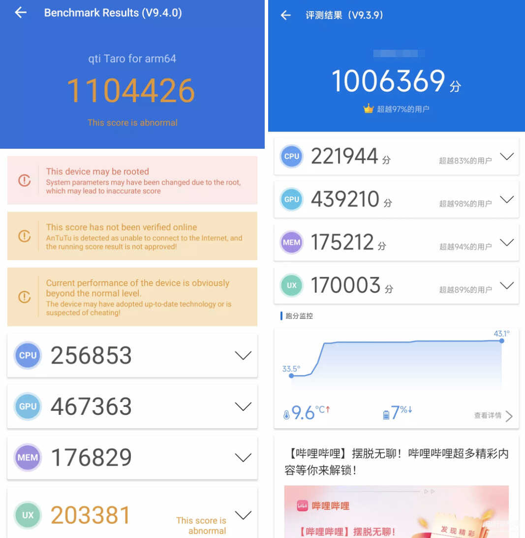 (左:QRD;右:某骁龙8 Gen 1手机)