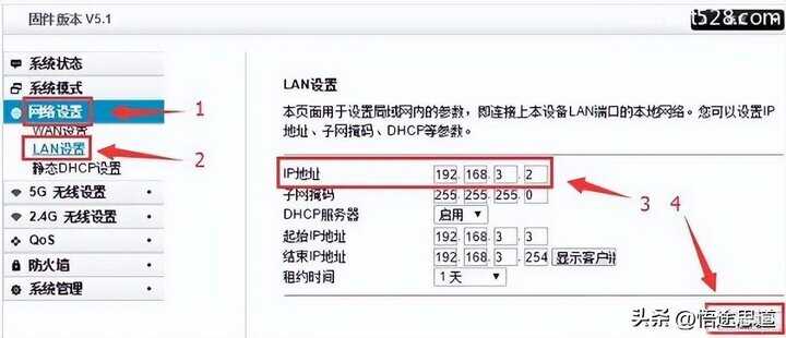 (4)、如果主路由器的IP地址是:192.168.3.1,则需要把TOTOLINK路由器的IP地址,修改为:192.168.3.2
