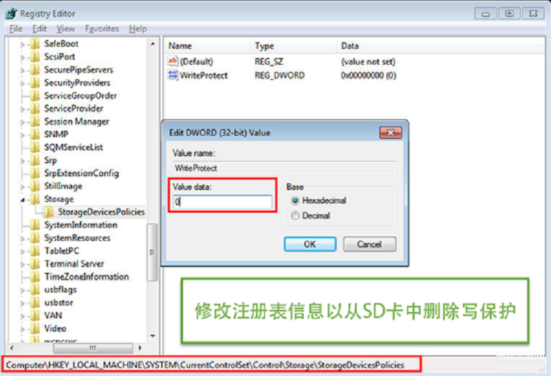 修改注册表信息以从SD卡中删除写保护