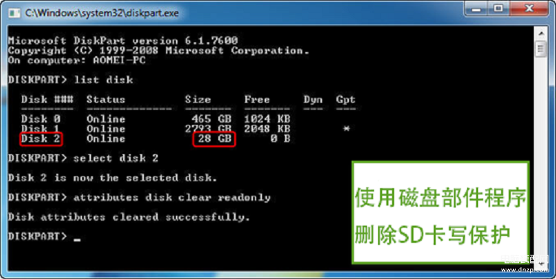 使用磁盘部件程序删除SD卡上的写保护