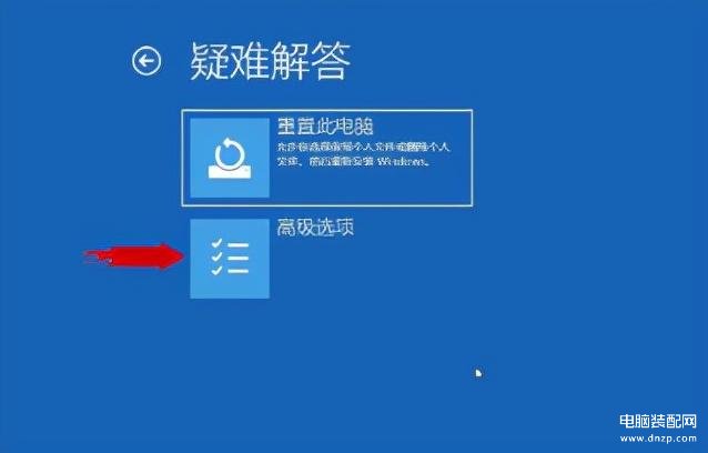 4.打开重启页面后,点击并疑难解答,如图所示。