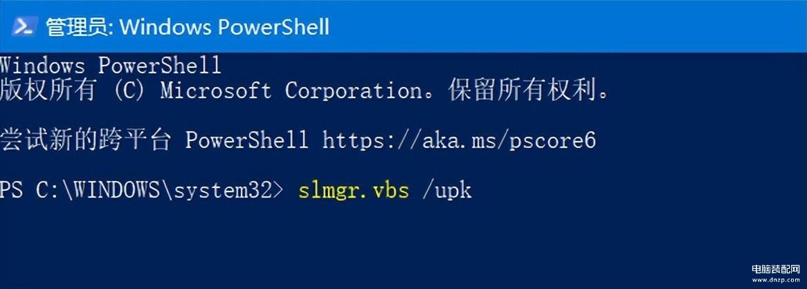 2、以管理员权限运行CMD命令,输入【slmgr.vbs /upk】回车(注意空格和标点符号),提示卸载密钥成功;