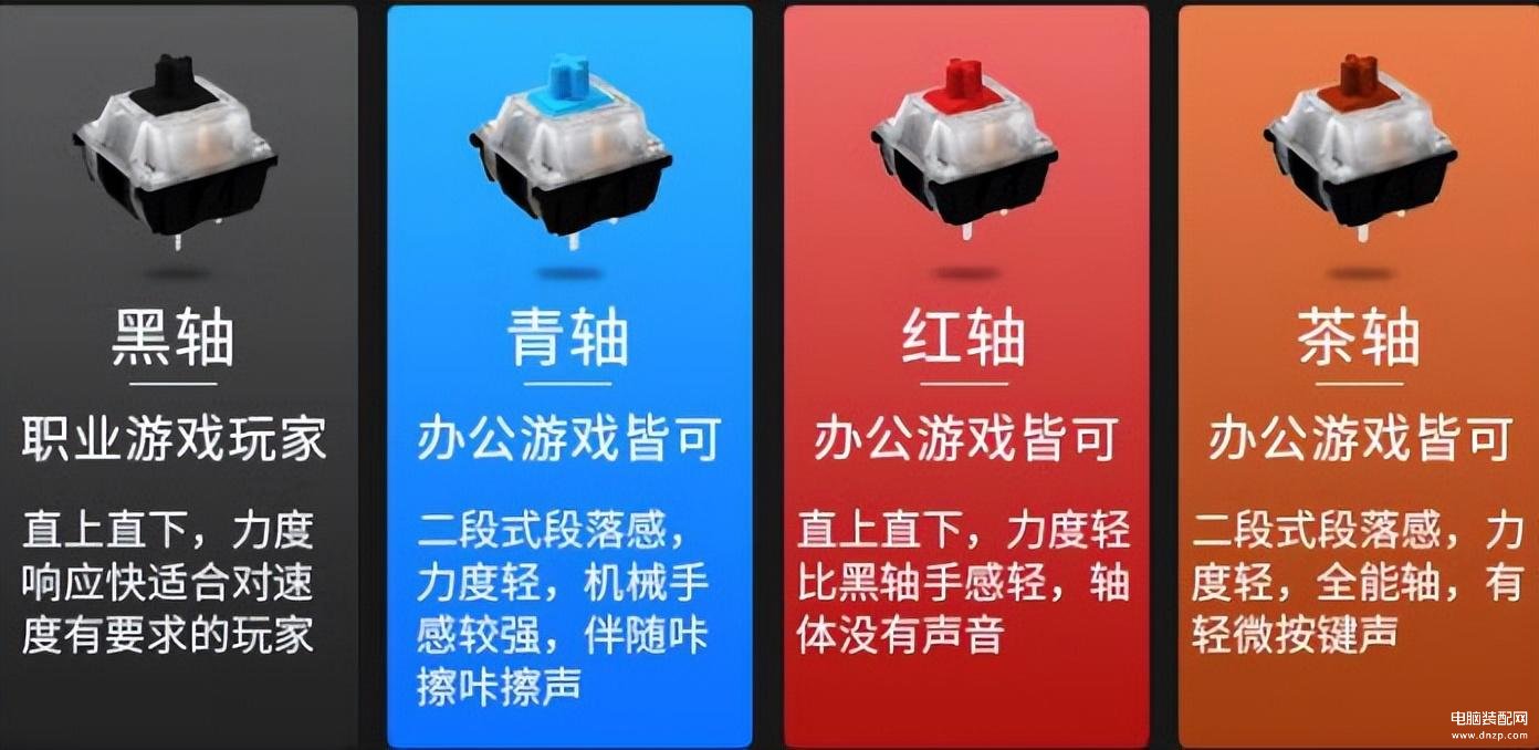 关于机械键盘的轴体——黑轴、红轴、青轴、茶轴之间的区别: