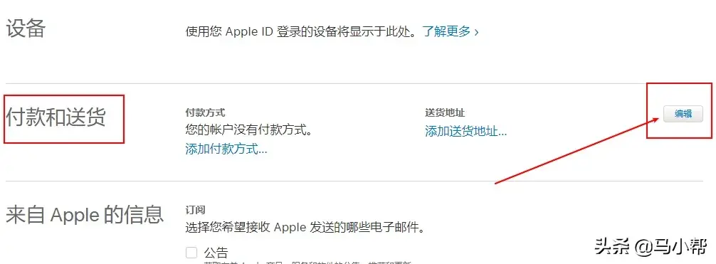 找到付款和送货信息,然后点击右边的编辑按钮!