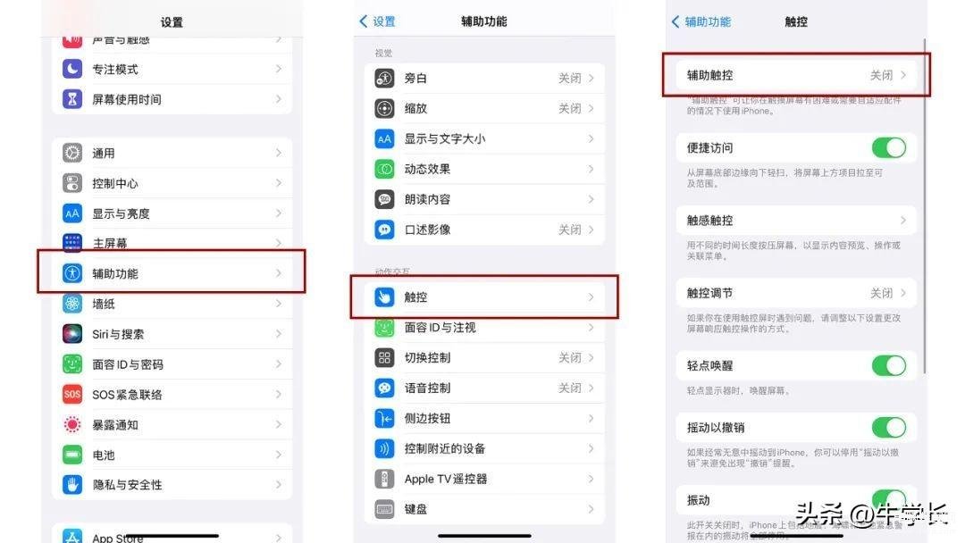 此方法的前提是开启了小白点,即【辅助触控】功能。