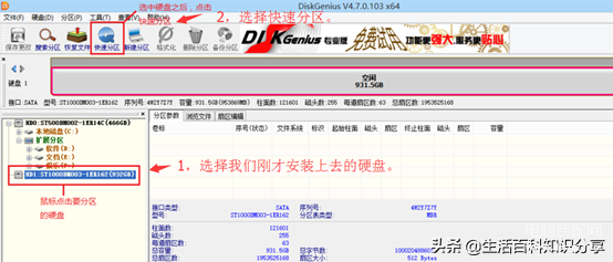 - 运行“Disk Genius”分区工具给硬盘分区。(如图)