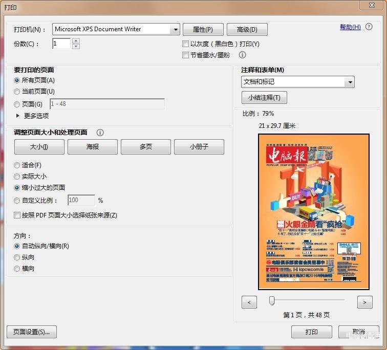 只要拷贝下这个文件,在Win7以上的系统中直接点击,系统都会用自带的XPS Document viewer打开这个文件,此时只要用XPS Document viewer自带的打印功能进行打印,就可以获得双面打印稿。什么,电脑上连自带的XPS Document viewer应用都没有,那也别担心,因为IE7以上的浏览器都支持XPS文件,只需要用IE打开文件,再进行打印就可以了。