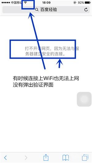 我们知道,一般连入公共WiFi网络,都要输入手机号等验证上网。不过有时手机连上WiFi,打开浏览器却没弹出验证页面,导致不能上网,这时该怎么办呢?今天我就为大家说道说道。