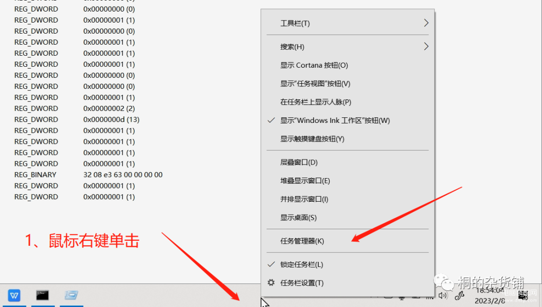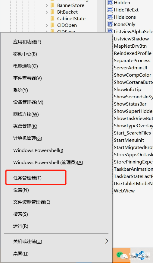 1、在任务栏(状态栏)鼠标右键,在弹出的菜单中选择【任务管理器】