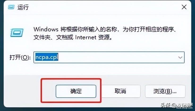 在打开的运行程序中输入:ncpa.cpl,点击确定。