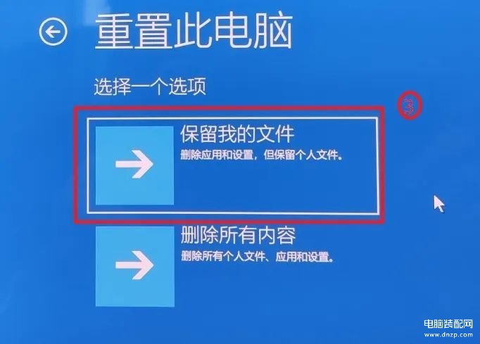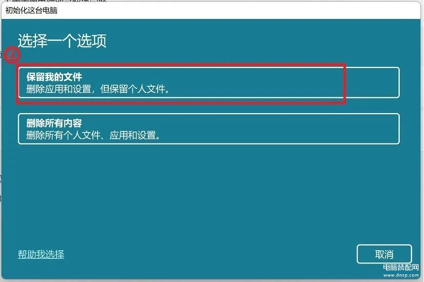 4.选择【保留我的文件】③。