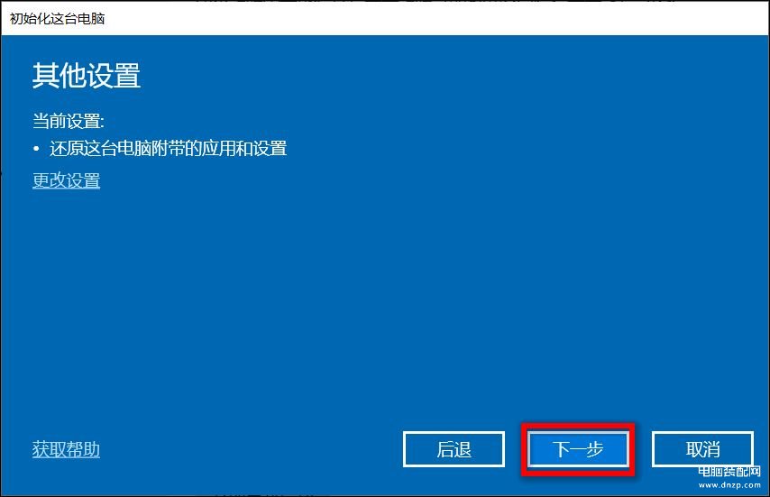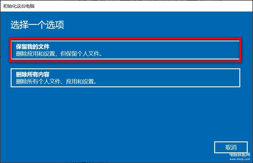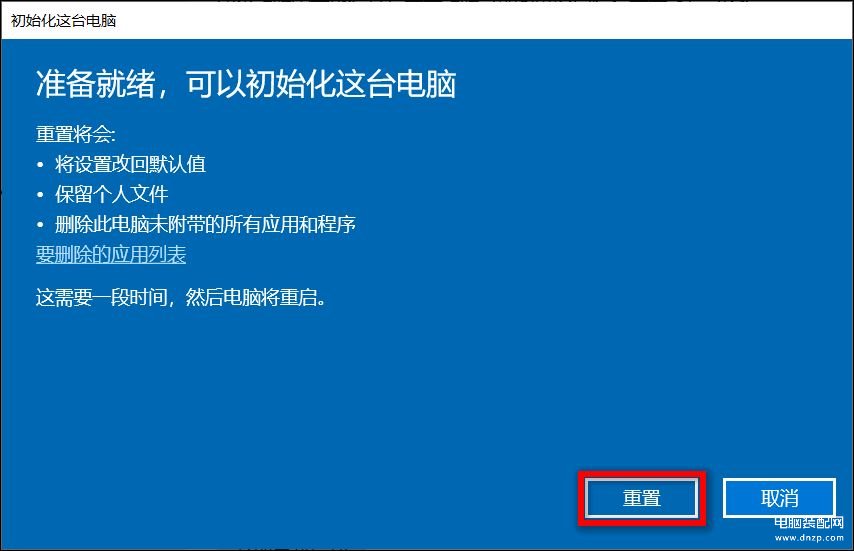 这个重置选项将会重新安装Windows操作系统并保留您的个人资料,如照片、音乐、视频、个人文件等,移除您所安装的应用程序和驱动程序,移除您对设置所做的变更。