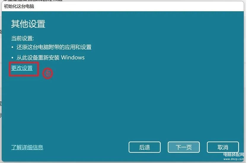 5.点选【更改设置】⑥。