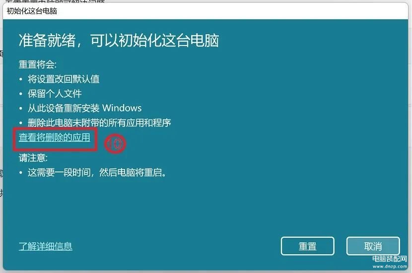 请注意: 重置电脑过程中需要花费较长的时间,在重置的过程中请确保有接上电源且不要强制关机,以避免发生异常问题。
