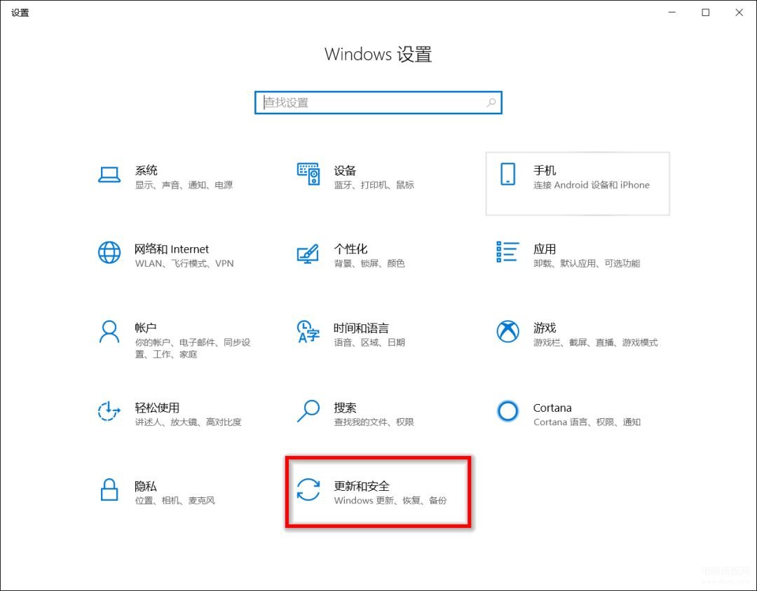 3.点击 "更新和安全"。