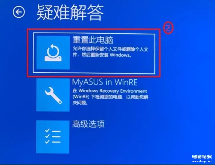 3.选择【重置此电脑】②